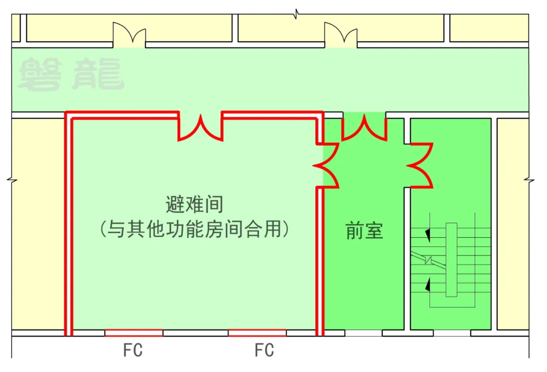 【图示17】避难间与前室以外的其他功能房间合用