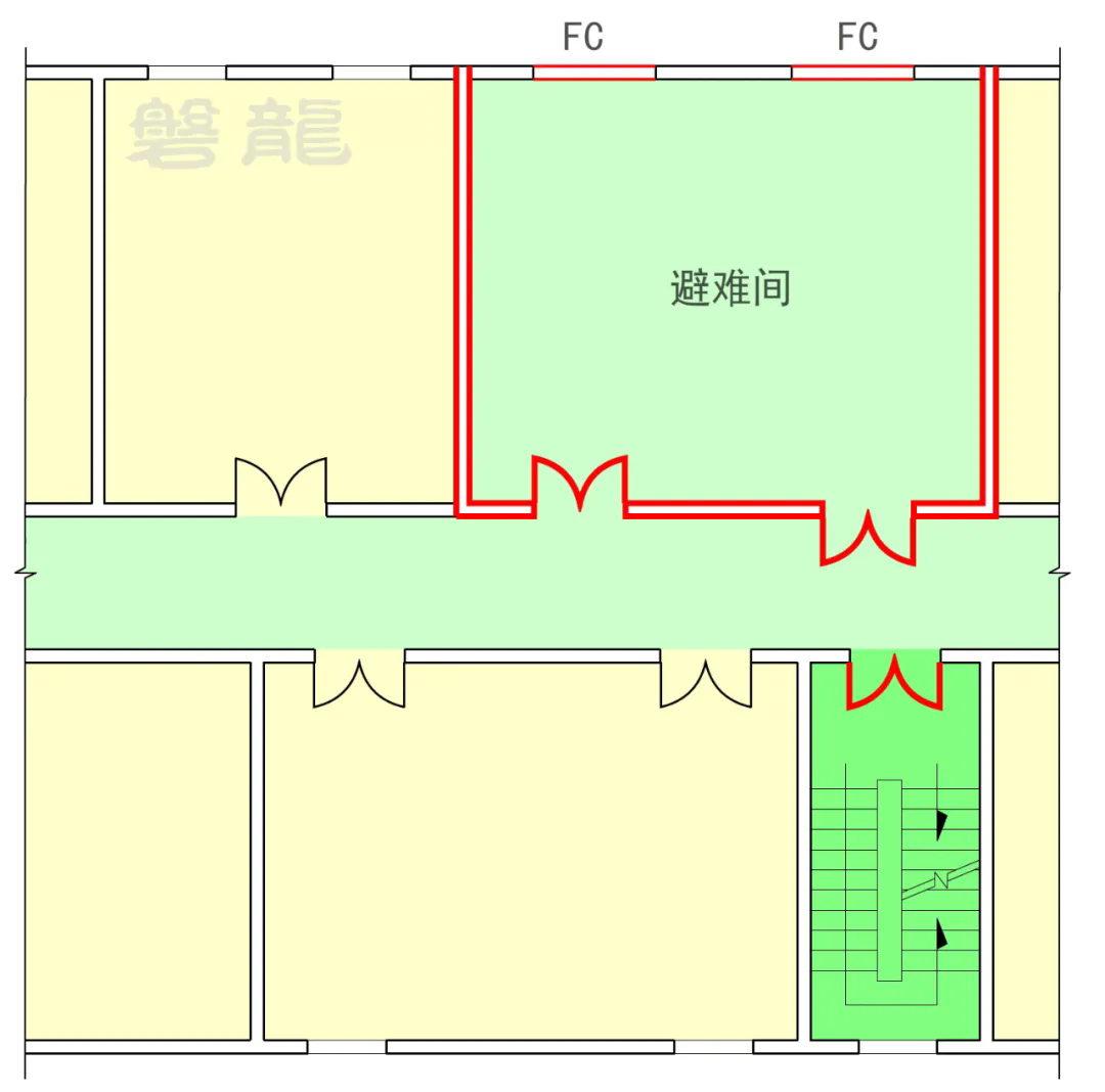 这类避难间主要用于解决特殊人群的平面疏散问题,通常称为“解决平面疏散问题的避难间”,以区别“解决竖向疏散距离过长而设置的避难层”。