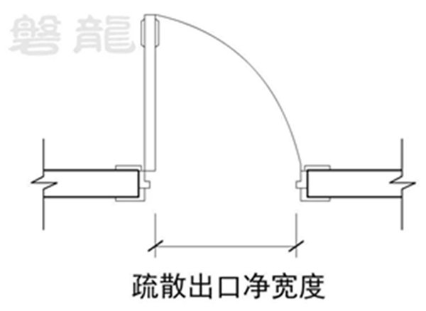 单扇疏散门的净宽度为门扇呈90°角打开时,门框内缘至门表面的水平距离。